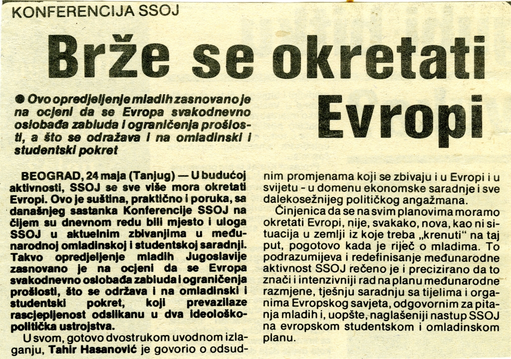 Govor Tahira Hasanovića na konferenciji SSOJ, 1989. godina